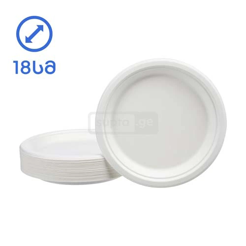 High-quality disposable cardboard plate with a diameter of 18 cm, made of solid material, ideal for buffets and parties. Order online easily at Supta.ge and get your oder in 2-3 working hours.