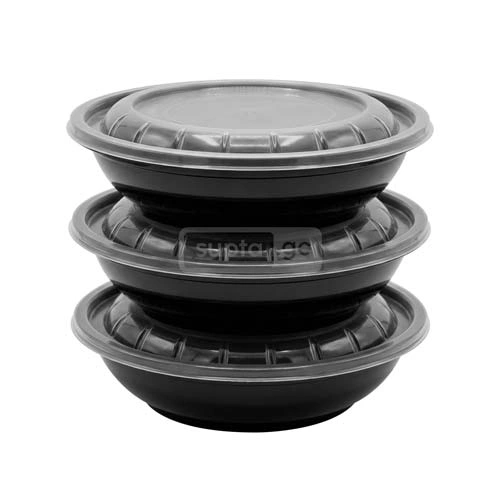 Disposable Round Black Container with Lid 500ml 1*100pcs