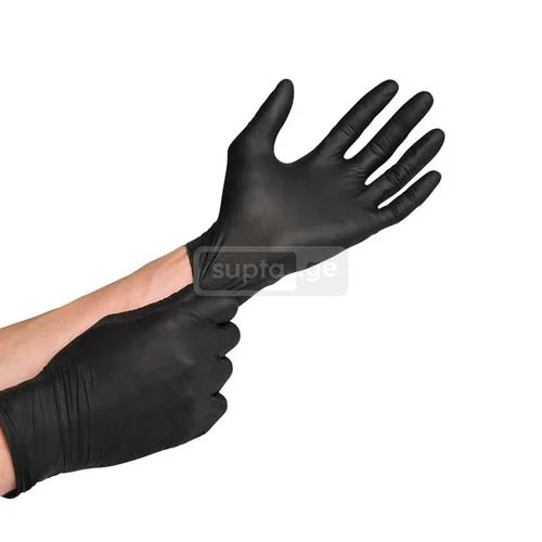 Nitrile medical powder free black glove, which is used for medical purposes as well as you can use it in food establishments. It fits comfortably on the hand.