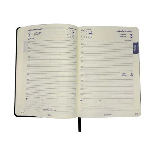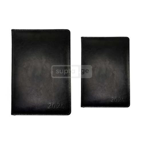 HELIO-ჰელიო A5 2026 წლის ყოველდღიური ბლოკნოტი შავი ტყავის ყდით