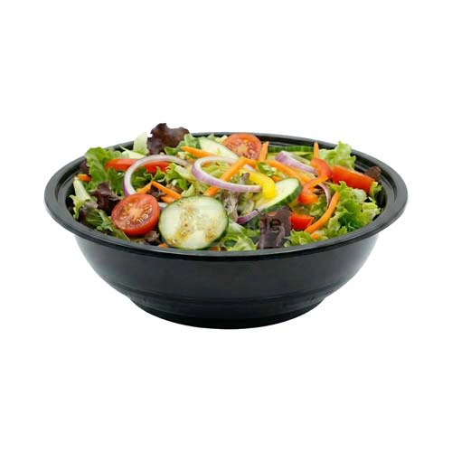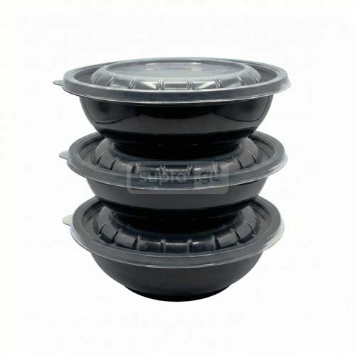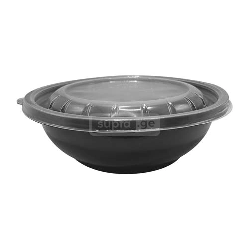 ერთჯერადი პლასტმასის მრგვალი შავი კონტეინერი თავსახურით 750მლ 1*100ც