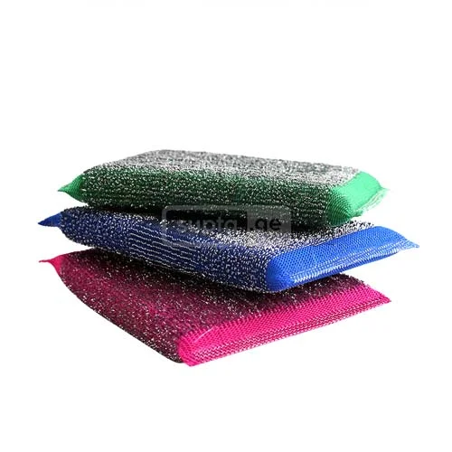 Scourer sponge is a textured cleaning cloth, it is used for cleaning stubborn dirt and grease from tableware, pots, pans, sinks, and other surfaces. Not recommended for use on Teflon surfaces.