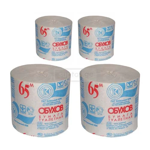 Toilet paper ОБУХОВ made of 1 layer and manufactured in Ukraine, you can order easily in online shop Supta.ge with fast delivery service.