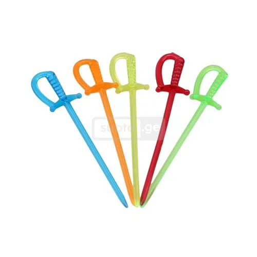 Product type: Plastic sticks-dagger Material: Plastic Color: Colorful Packaging: 1000 pcs. Country of manufacture: Turkey     Detailed information: Made of solid material, does not break easily. Ideal for catering and buffets.